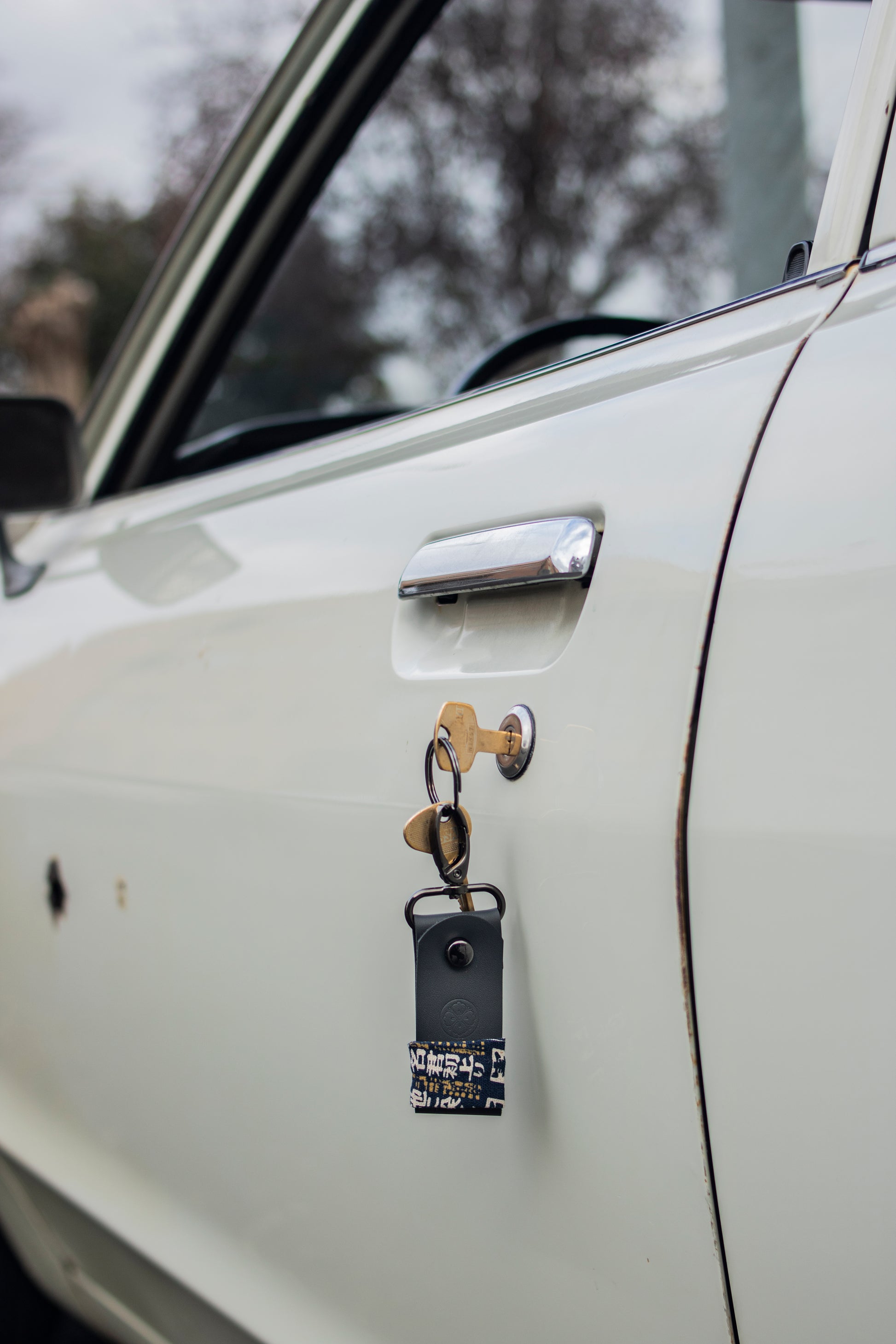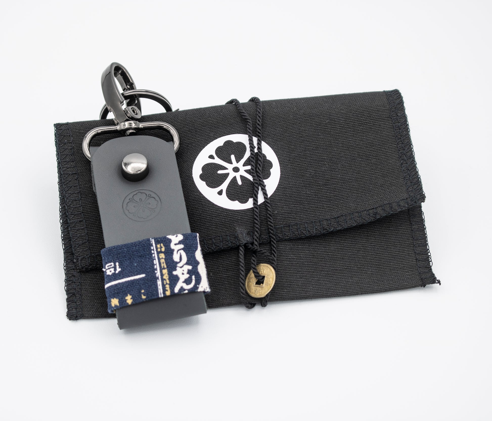Los llaveros Okure están fabricados en piel de Napa Calidad A, con tela Wagara Japonesa 100% algodón.